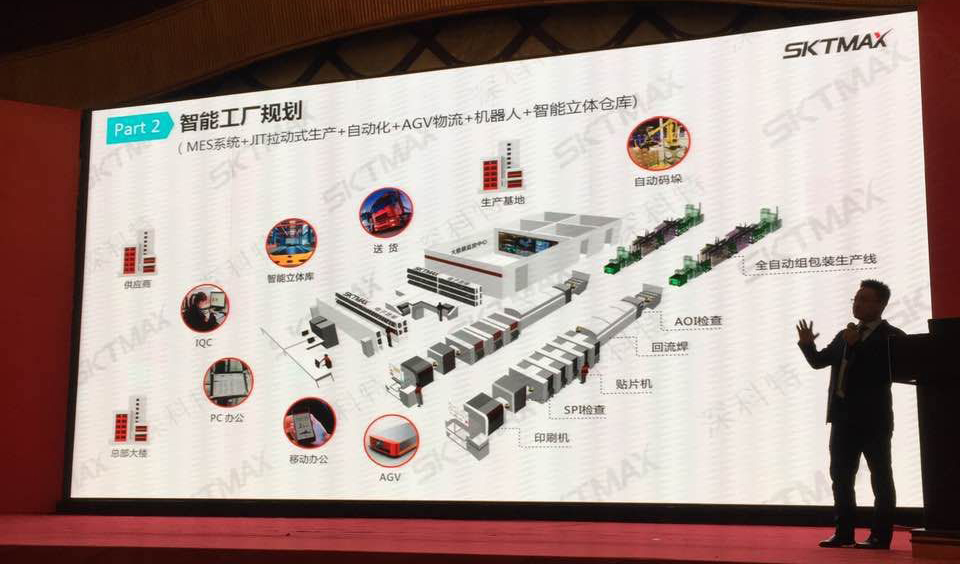 ? ? ?汪陽名總監(jiān)還向與會嘉賓闡述了深科特的發(fā)展戰(zhàn)略,深科特基于自主研發(fā)的LEAN?MES系統(tǒng)為核心,整合上下游優(yōu)質(zhì)資源,2017年攜手賽摩集團,可提供智能立體倉庫、智能物流、產(chǎn)線非標自動化設(shè)計方案在內(nèi)的整體智能工廠解決方案。并相繼簽約了長虹、創(chuàng)維、比亞迪、國人通信、芬尼克茲、德普特、好幫手、普思電子、福摩斯托等大型MES及自動化項目,企業(yè)發(fā)展勢頭迅猛。