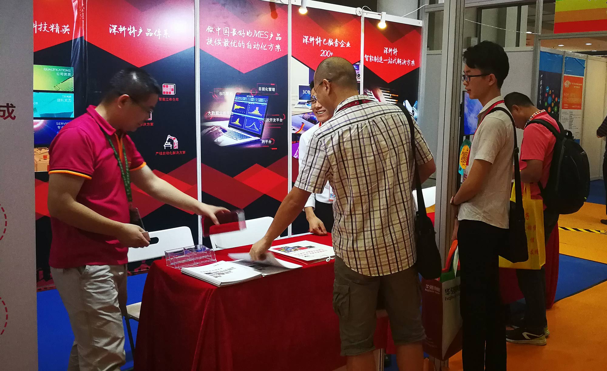 ? ? ? ?在今年的EeIE上,我們展示了除LEAN MES系統以外的智能制造深度集成方案。深科特很早就開始開發面向工廠的自動化、智能裝備、智能生產管理的智能制造一站式解決方案。我們專注于幫助客戶落地智能制造理念,并將在智能工廠至關重要的各個領域,推出獨具創新且真正開創性的智能制造一站式解決方案。